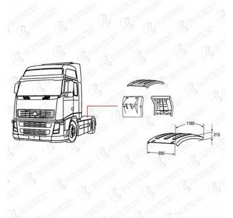 Calotta semipiatta dx sx con 4 tiranti (1079981) VOLVO FH 1°2°3°SERIE FH-FM 2°SERIE FH4 FMX EURO5 RENAULT NEW PREMIUM MAGNUM