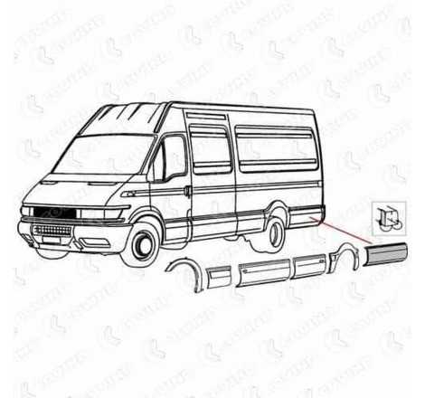 Paracolpi laterale sinistro Iveco Daily' 2000 furgone passo 3950 porta posteriore apertura 270°