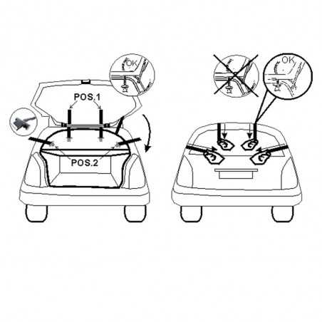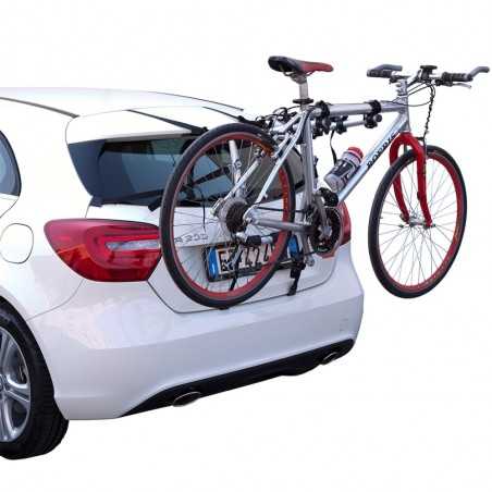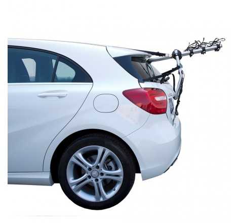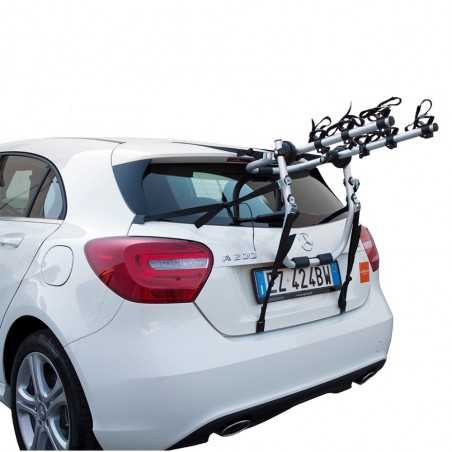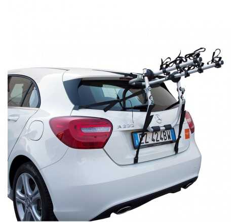 • Portabici posteriore per il trasporto di 2 o 3 biciclette, realizzato per vetture con cofano o portellone standard così come per vetture con spoiler, lunotti di vetro o paraurti in plastica